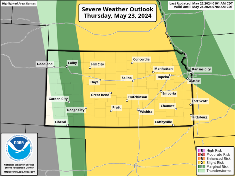 SPC Upgrades Pratt, Kingman, Wichita, Medicine Lodge, Anthony, Harper, Wellington and surrounding small towns to MODERATE risk for high-end severe weather tomorrow.
